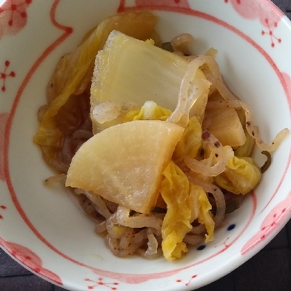 へそ大根と白菜のにんにく味噌煮 140 わんたるママとお料理しましょ